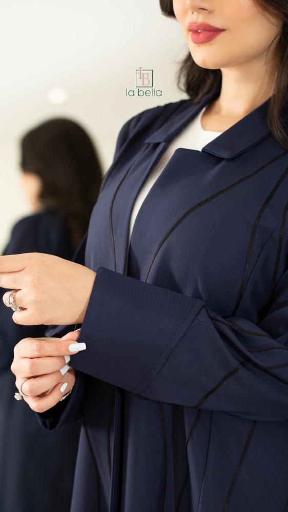 • عباية تفته كحلي تصميم لف عملي يسهل ارتداء العباءة وتعديلها.